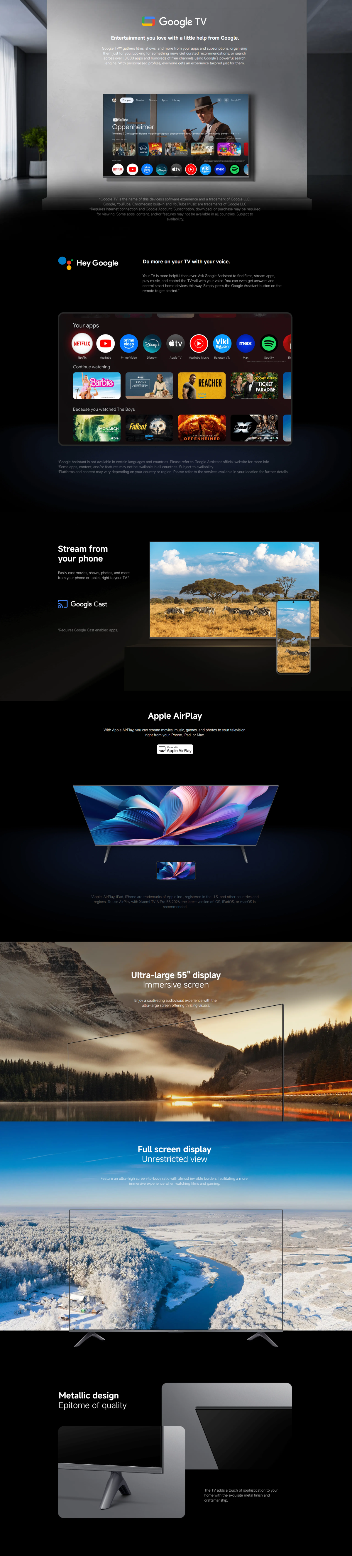 TV with tuner Bright 4K QLED display with motion smoothing technology 120Hz refresh rate under Game Boost mode via HDMI Sleek metal finish with ultra-thin bezel design Immersive sound with Dolby Audio™, DTS:X, DTS Virtual:X