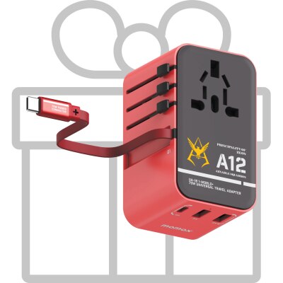 Momax 1-World+ 70W GaN 3-Port w/ Built-in USB-C Cable + AC Travel Adaptor - UA18 Power Charger