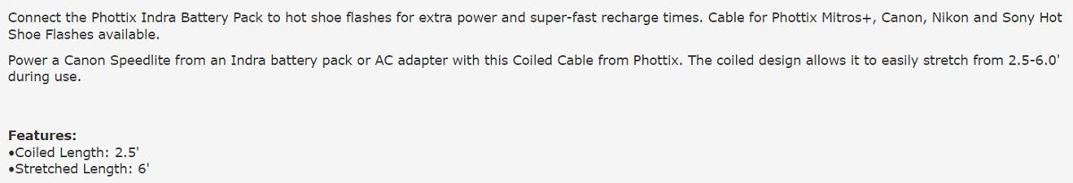 Phottix 1151, Indra Battery Pack Flash Cable for Canon