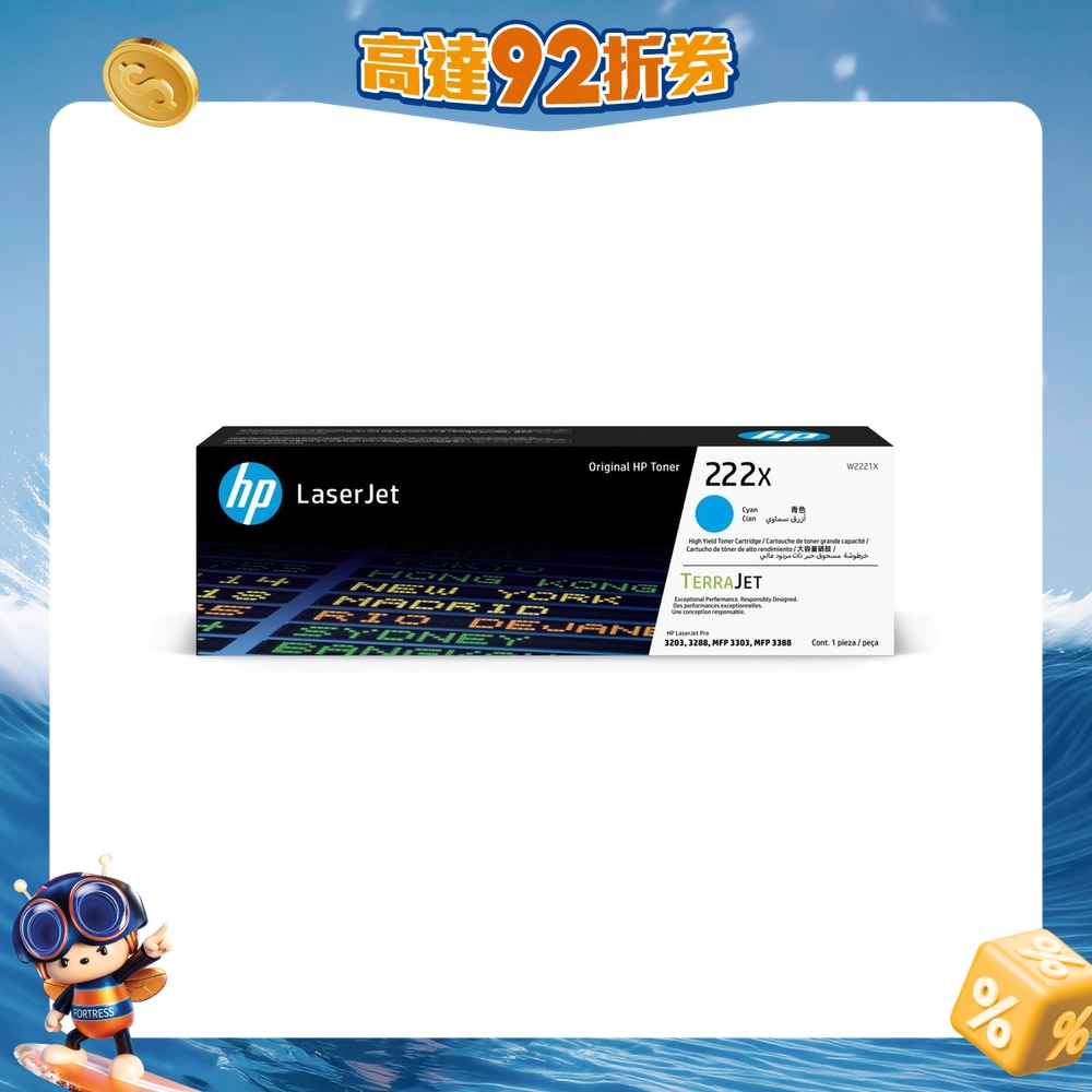 HP 222X High Yield Cyan Original LaserJet Toner Cartridge (W2221X) / Around 2500 pages