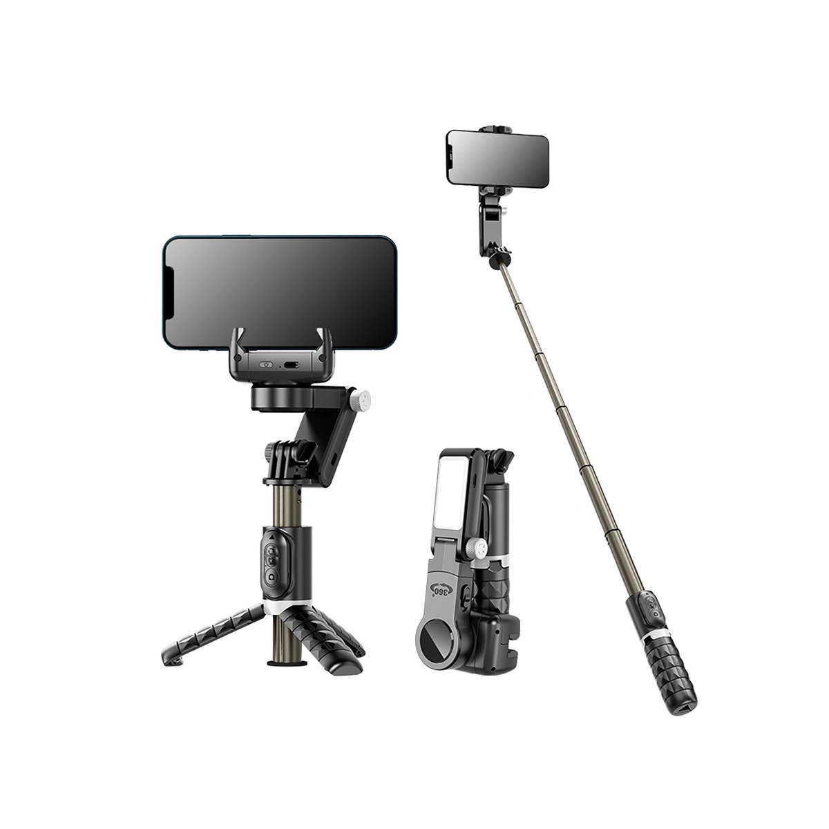 1. Mini and compact "selfie stabilizer" 2. Gimbal mode: automatic leveling and calibration when booting 5. Diversified shooting accessories: fill light tripod Bluetooth remote control