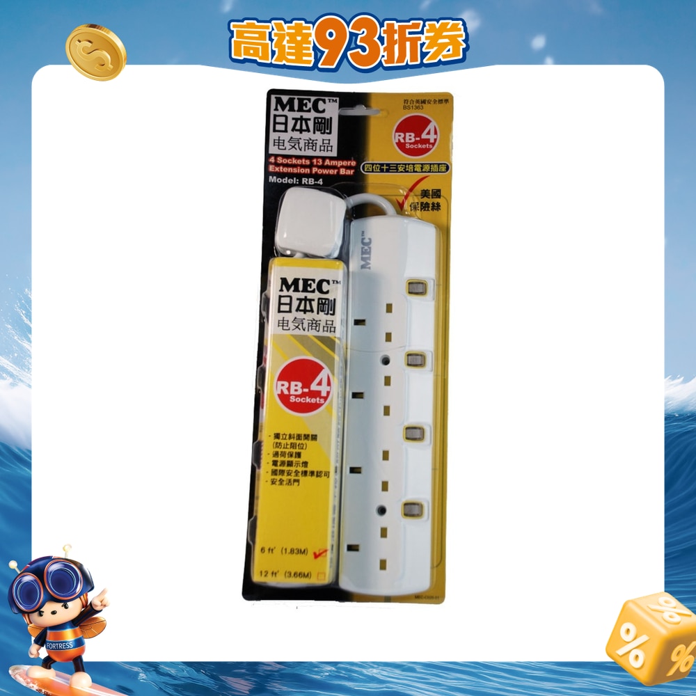 4 SOCKET POWERBAR BUILT-IN INDEPENDENT POWER SWITCH (6 FT.) (RB-4/6' WHITE)