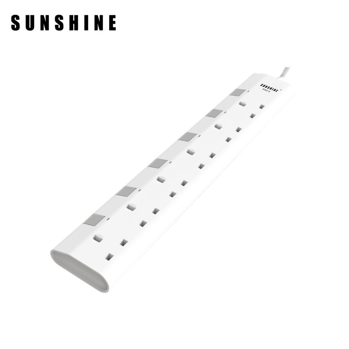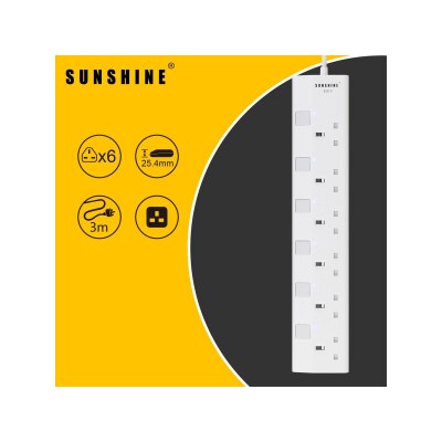 SUNSHINE 6 Gang Switched Extension Socket Power Strip with 3M Cable and Blue Indicator (White)
