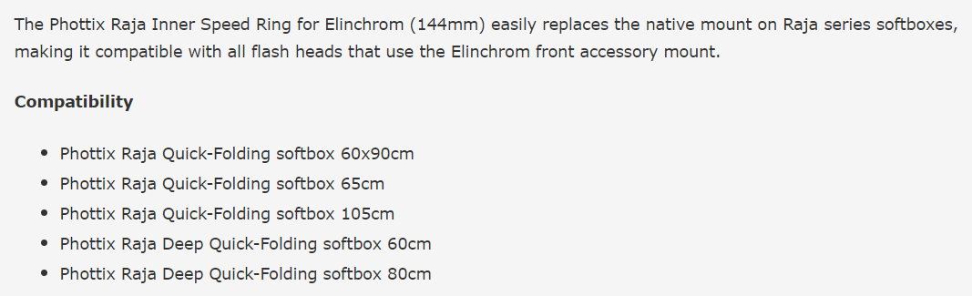 82584, Speed Ring - Inner Ring For Elinchrom (144mm)