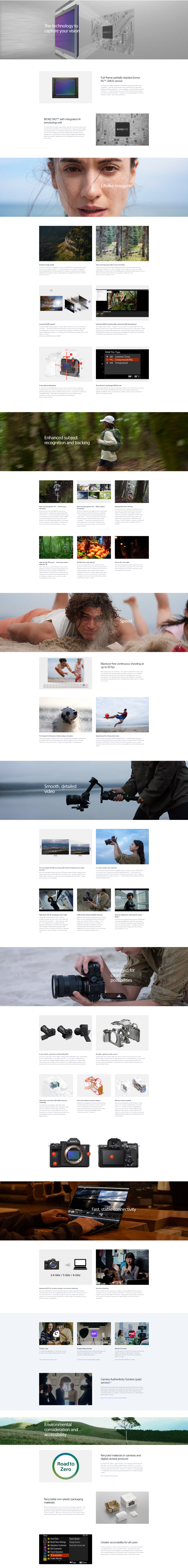 A new imaging experience from the newly developed processing unit BIONZ XR2/ Flagship-class image quality and advanced AI based AF/ 30 fps high-speed continuous shooting/ On-the-spot streaming and sharing of high-quality content