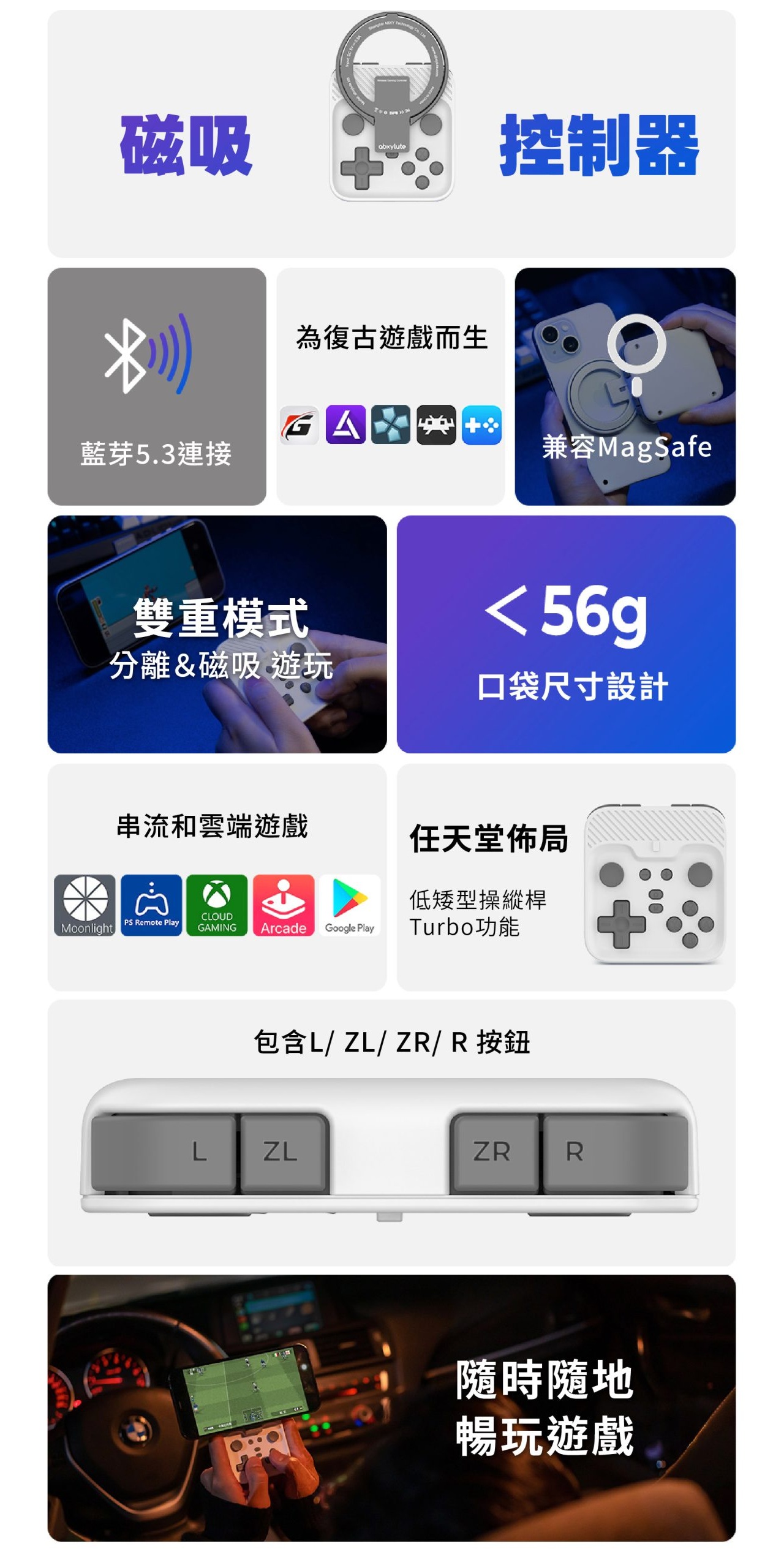 This magnetic phone joystick, developed for retro gamers, is ultra-lightweight at only 56g. Through MagSafe magnetic attachment, it provides a convenient "one-tap, one-turn, instant play" experience.