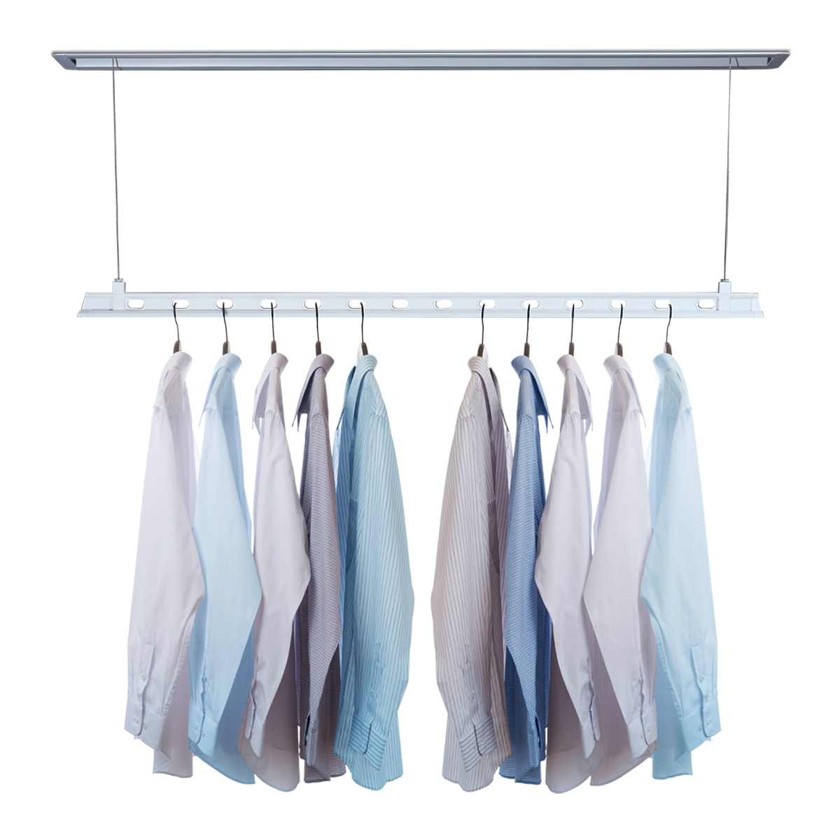flush-integrated automatic elevating hanger & LED lighting 2-in-1, Remote control,lowers rod for easy hanging,replacement for ceiling lighting,both single & multi-rod installation,35kg capacity,9cm super slim body, perfect for small balcony