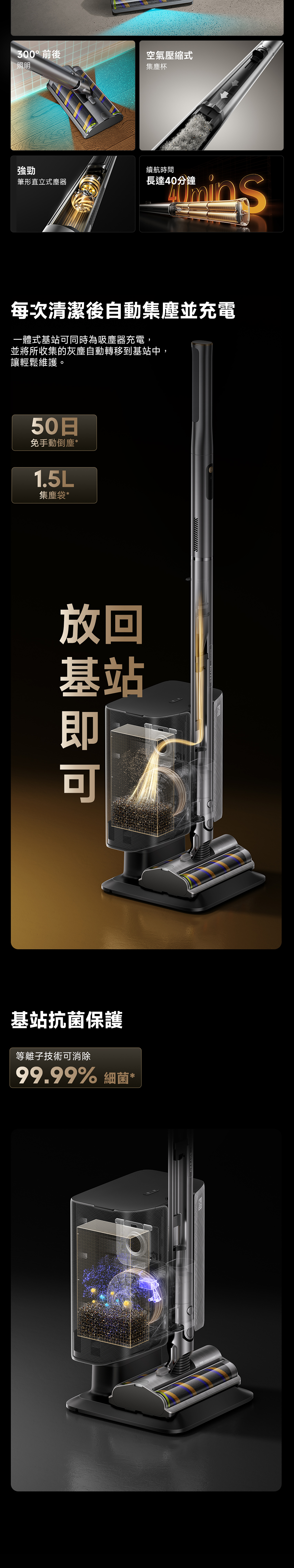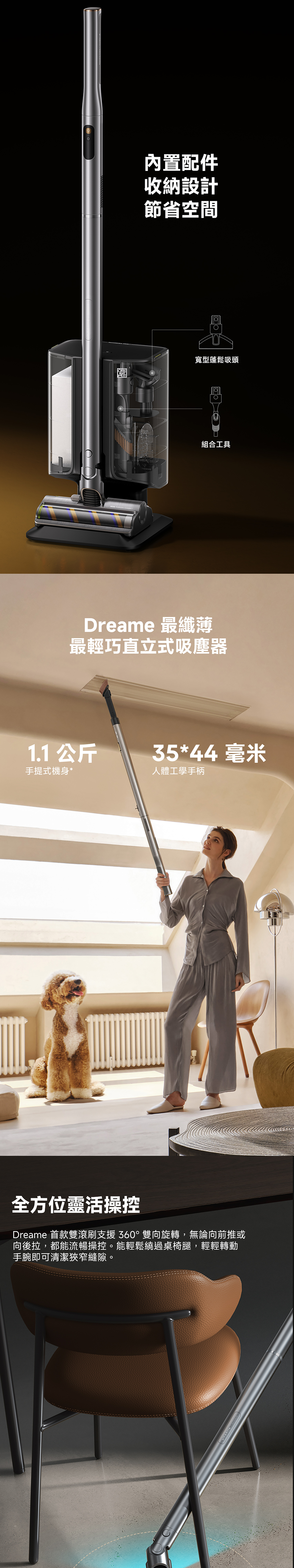 Air Station Dreame the slimmest stick self-collecting vacuum cleaner,Lightweight and slim,180° flat-lying cleaning,300° omnidirectional lighting, 16x dust detection