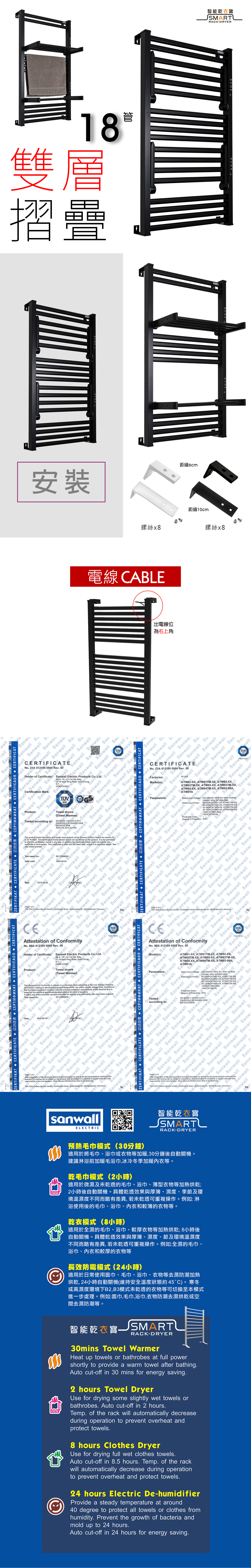 18 tubes wall mount foldable small size, electric towel warmer, equipped with artificial intelligence and efficient drying program, precise intelligent temperature adjustment, to ensure that your soft clothes material is not damaged