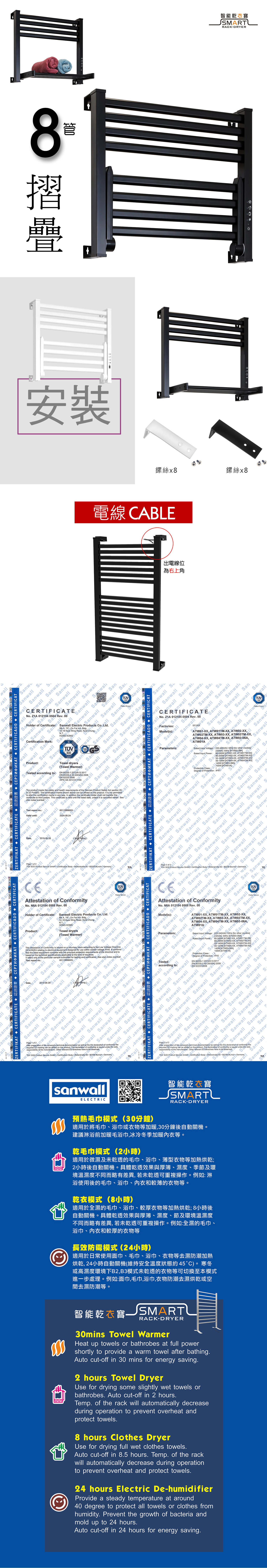 8 tubes wall mount foldable small size, electric towel warmer, equipped with artificial intelligence and efficient drying program, precise intelligent temperature adjustment, to ensure that your soft clothes material is not damaged