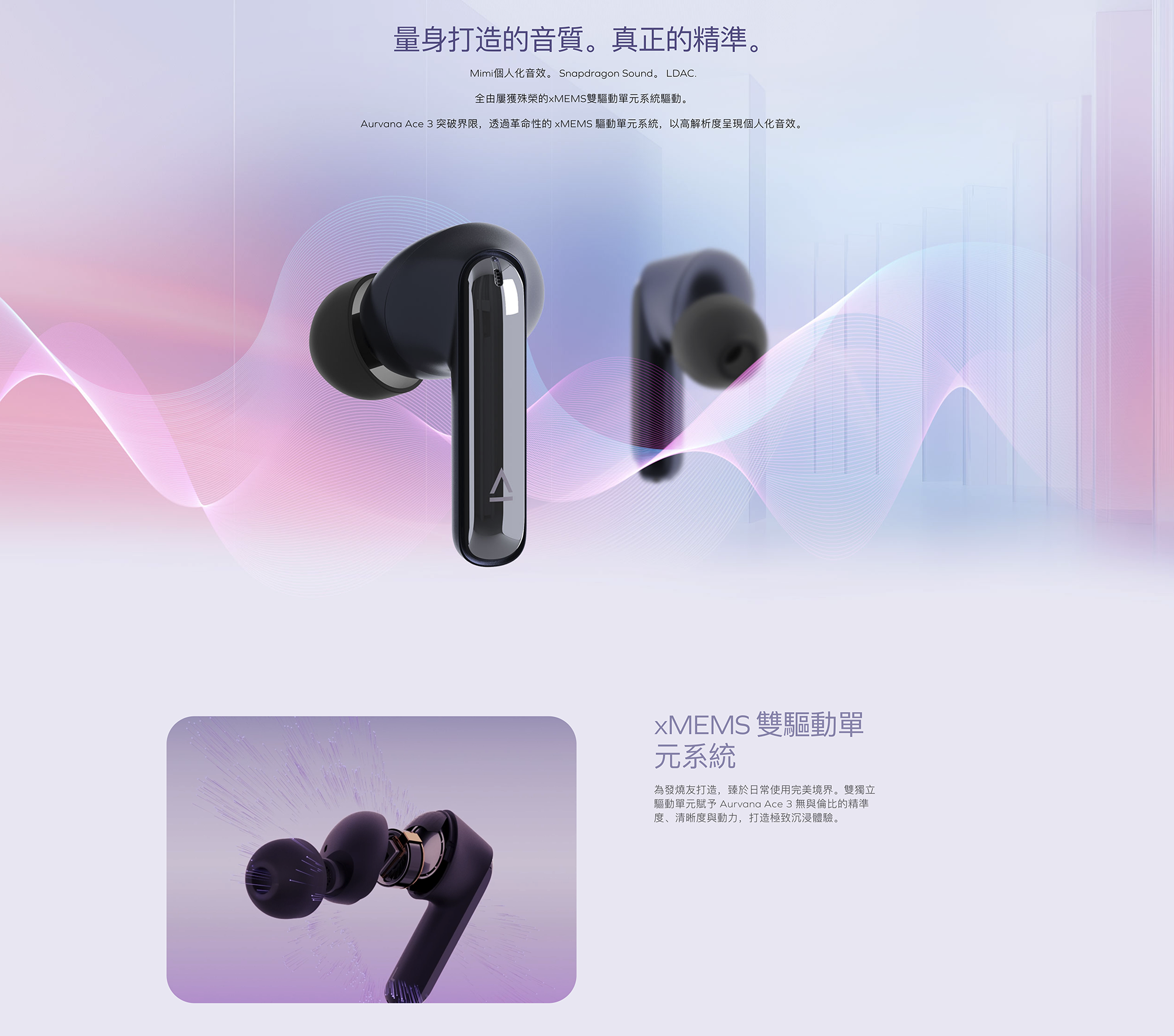 Aurvana Ace 3 revolutionizes the personal audio experience with innovative technology, delivering unparalleled performance and an immersive listening experience through Mimi Sound personalized audio, Snapdragon Sound™ and xMEMS technology