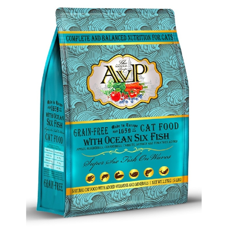 AVP®1659 Super Six Fish on Waves™ with Ocean Six Fish Grain-Free Cat Food is formulated to meet the nutritional levels established by the AAFCO Cat Food Nutrient Profiles for all life stages.