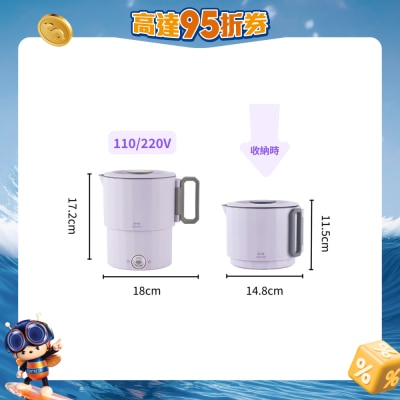 110V/220V dual voltage design for worldwide use/Ultra-compact foldable storage design/Smart Boiling & Keep Warm: Auto-stops when water boils, switches to keep-warm mode