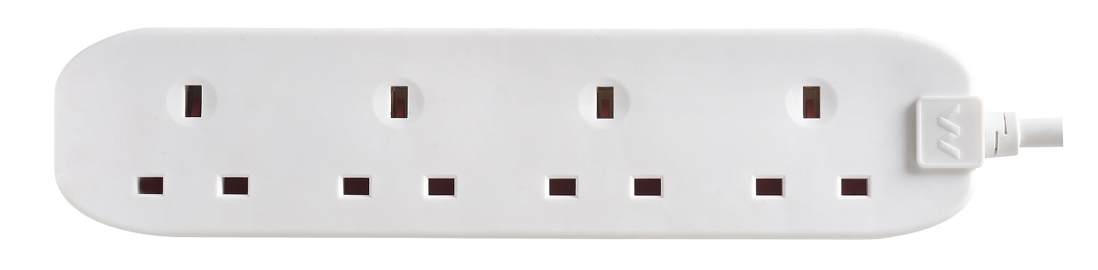 Masterplug UK Brand, 4 Sockets Extension Leads White BFG2N, 13A Fuse, Rounded slimline appearance, 2 metres of cable, Manufactured to BS1363-2, 3 year warranty, Wall mount