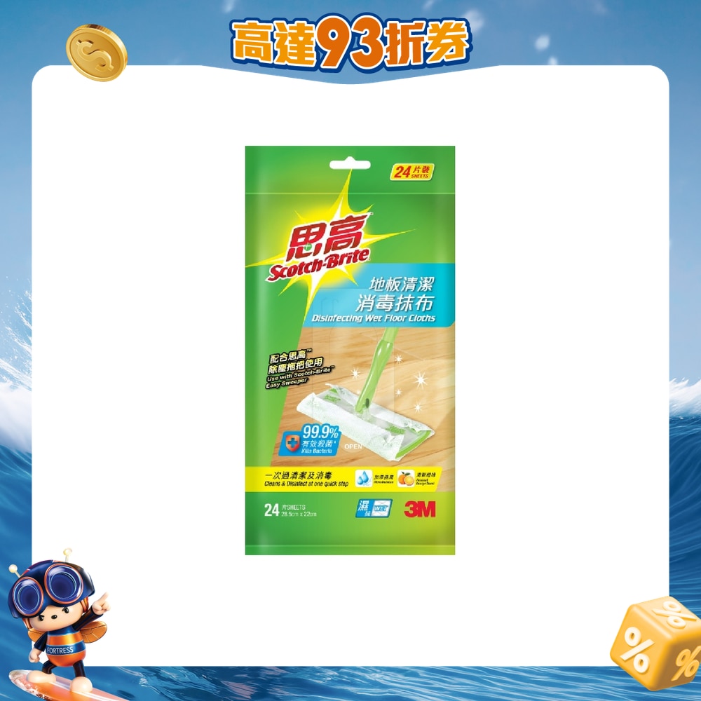 3M - Scotch Brite - Disinfecting Wet Floor Wipe(24Pcs/Pk) (841HK)