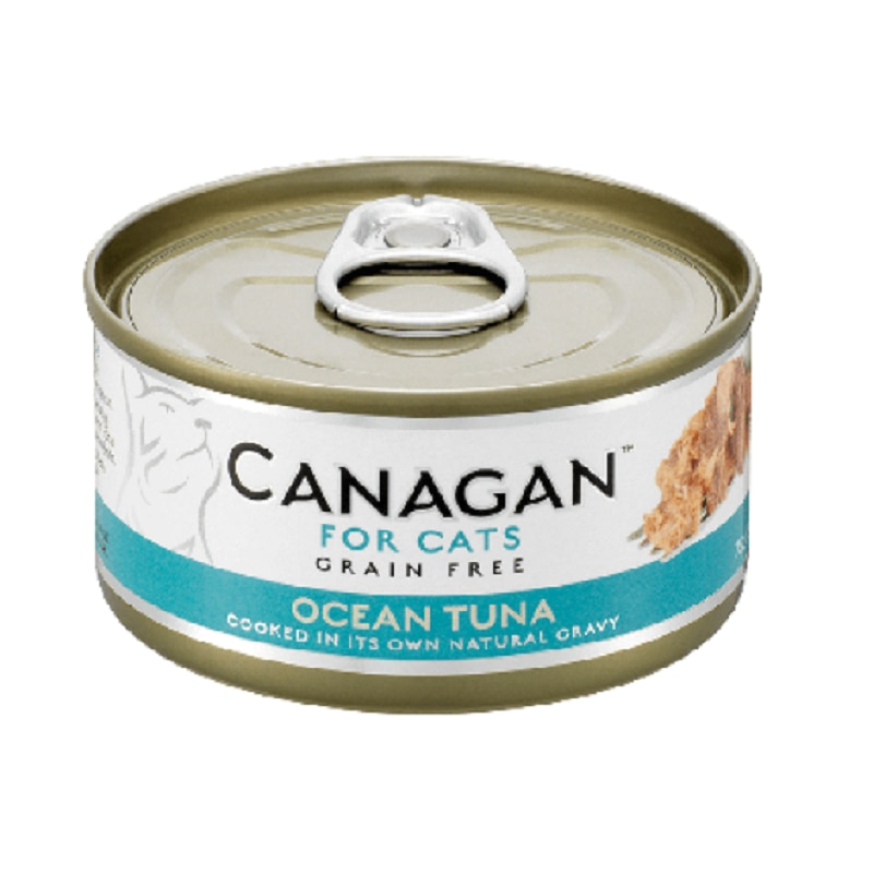 Description OCEAN TUNA FOR ALL LIFESTAGES Ocean Tuna simply cooked in its own natural gravy. Canagan is a highly nutritious complete food for cats that can also be used to accompany dry food. All our tuna is ocean-caught using dolphin-friendly methods. COMPOSITION Tuna Whole Meat (61%), Tuna Broth (35%), Thickening Agent (Tapioca), Sunflower Oil, Vitamins and Minerals.