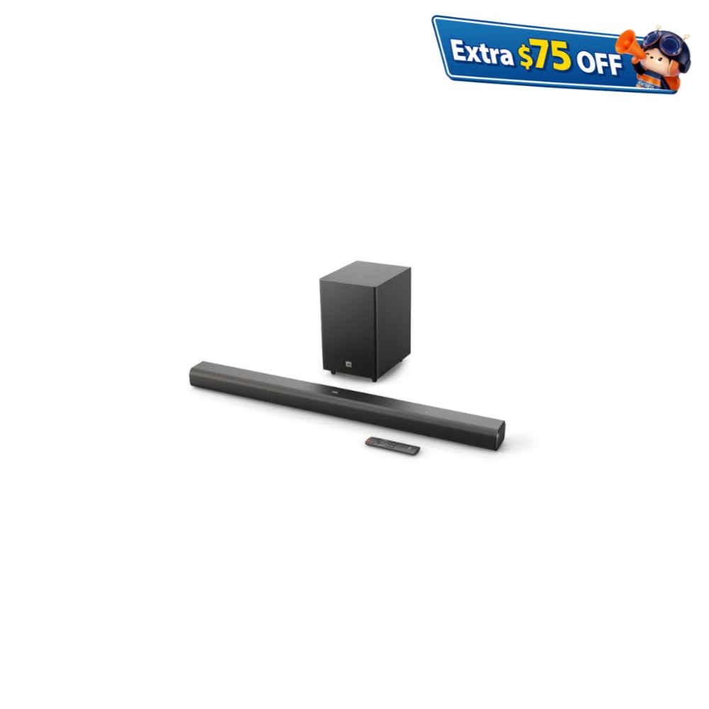 Step up your sound with the 3.1 channel JBL Cinema SB550 soundbar. 250 watts of powerful Dolby Audio in a compact design, plus extra deep, extra bass from a wireless 5.25” subwoofer