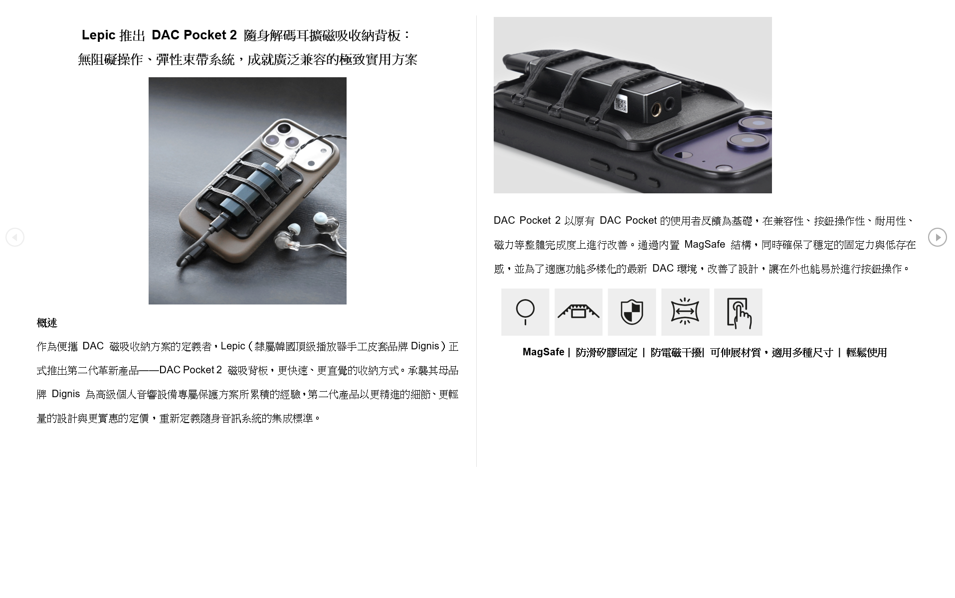 Lepic推出 DAC Pocket 2 隨身解碼耳擴磁吸收納背板,無阻礙操作、彈性束帶系統,成就廣泛兼容的極致實用方案,DAC Pocket 2 磁吸背板,更快速、更直覺的收納方式。承襲其母品牌 Dignis 為高級個人音響設備專屬保護方案所累積的經驗,第二代產品以更精進的細節、更輕量的設計與更實惠的定價,重新定義隨身音訊系統的集成標準。