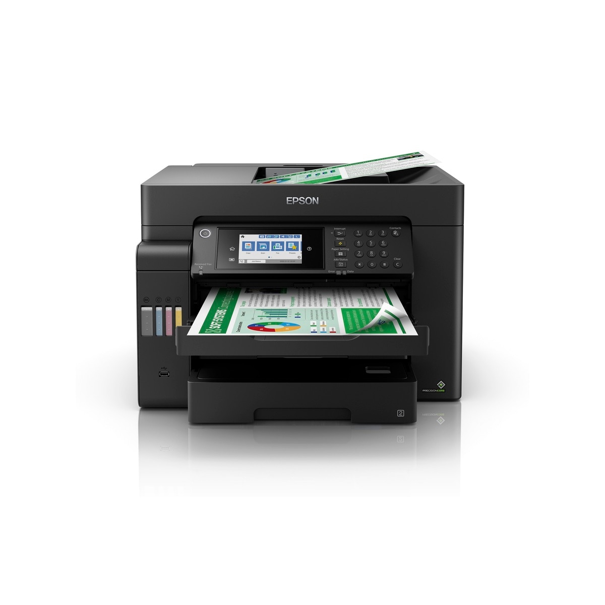 4-in-1 with Wi-Fi® & Ethernet : A3+ Print / Copy / Scan / Fax, Ink bottle: Pigment Black & Color (CMY), Support A3 duplex print & scan, ISO Print Speed: Black: 25 ISO ipm/ Color: 12 ISO ipm