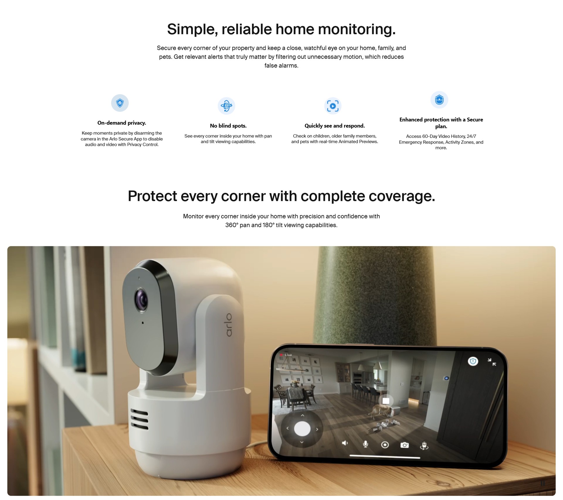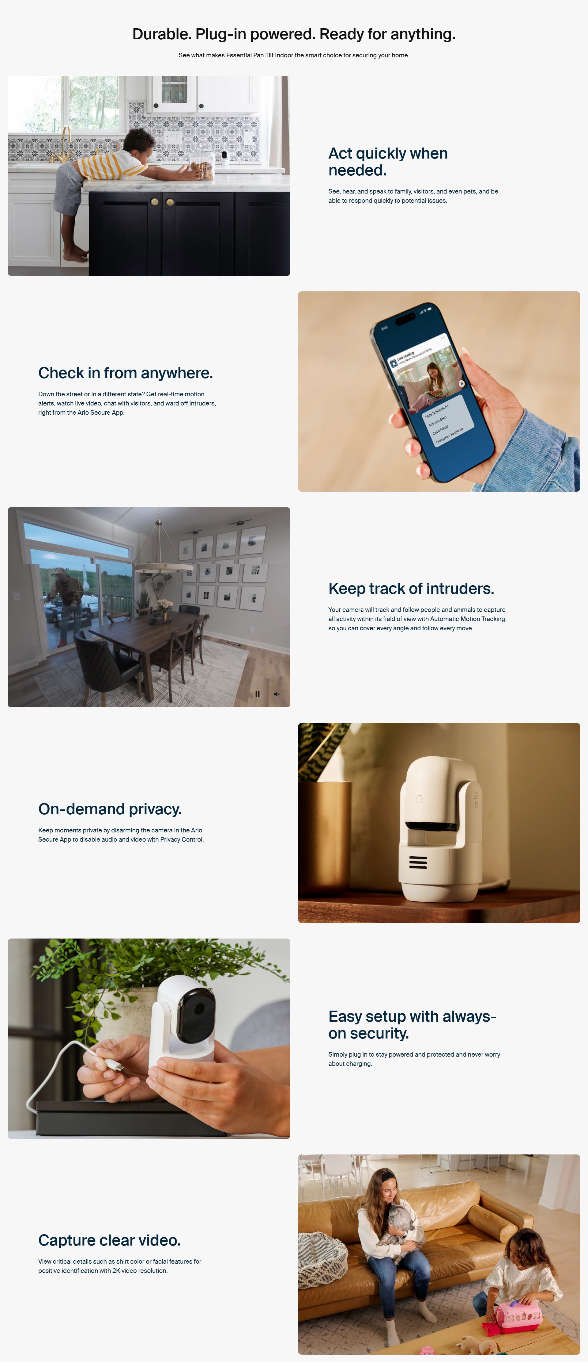 With pan and tilt viewing capabilities, experience crystal-clear 2K video, full 360º coverage, and reliable plug-in power to safeguard your home, family, and pets.