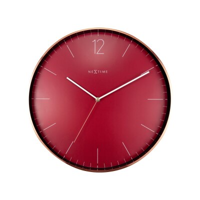 "Essential Copper" has a copper coloured case made of brushed aluminium, a red dial with a light red stripe index and a number at 12 o'clock. The thin hands and second hand gives this clock a chic and stylish design that fits all interiors.
