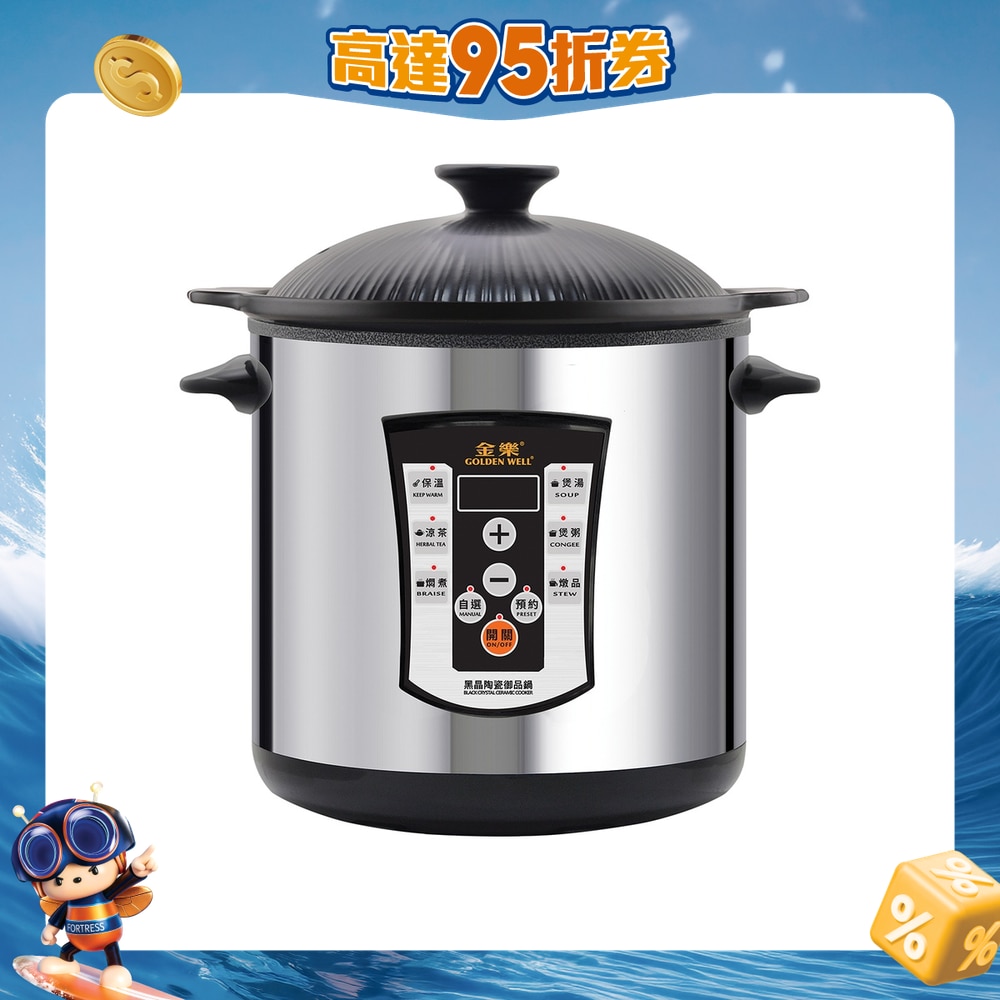 Capacity: 6 liters Automatic cooking program : 6 Program: soup, herbal tea, soup, stew, braise, keep warm Pre-cooking time function: Yes Power: 900 watts Volume: 320 x 270 x 355 mm Equipped with black crystal ceramic liner 3 Year Warranty