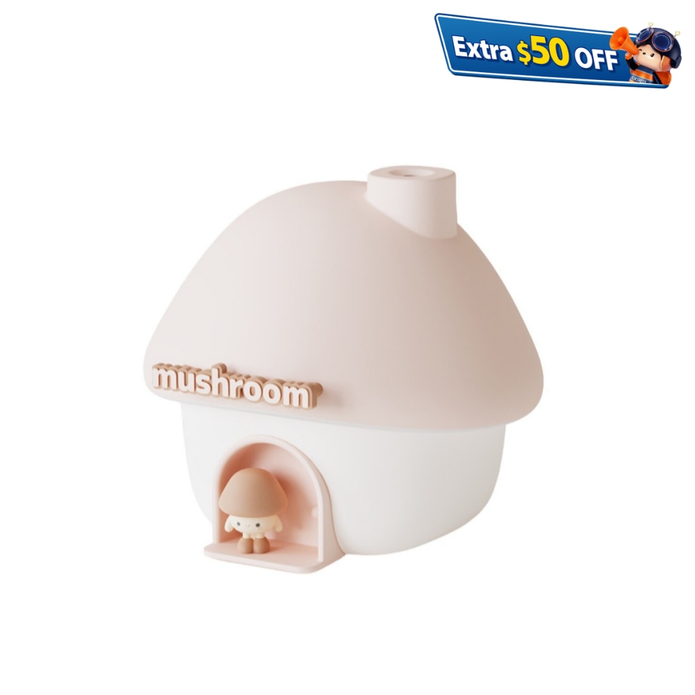Mushroom Humidifier with Nighy Light, Rechargeable 2000mAh Battery, Water Capacity: 300ml, 2 Spray Settings, Misting 30-50ml /Hour, 4 & 8 Hours Spray Auto Off, Projection Light Mode