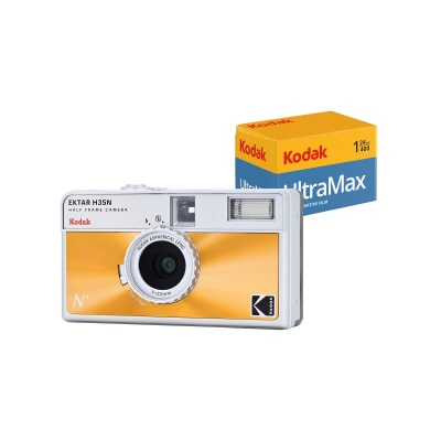 KODAK EKTAR H35N Half Frame Film Camera comes with a built-in star filter, a bulb shutter and a tripod hole. It also features an element of glass lens which produces sharper photos. Bundle includes a roll of Kodak Ultramax400 24exp film.