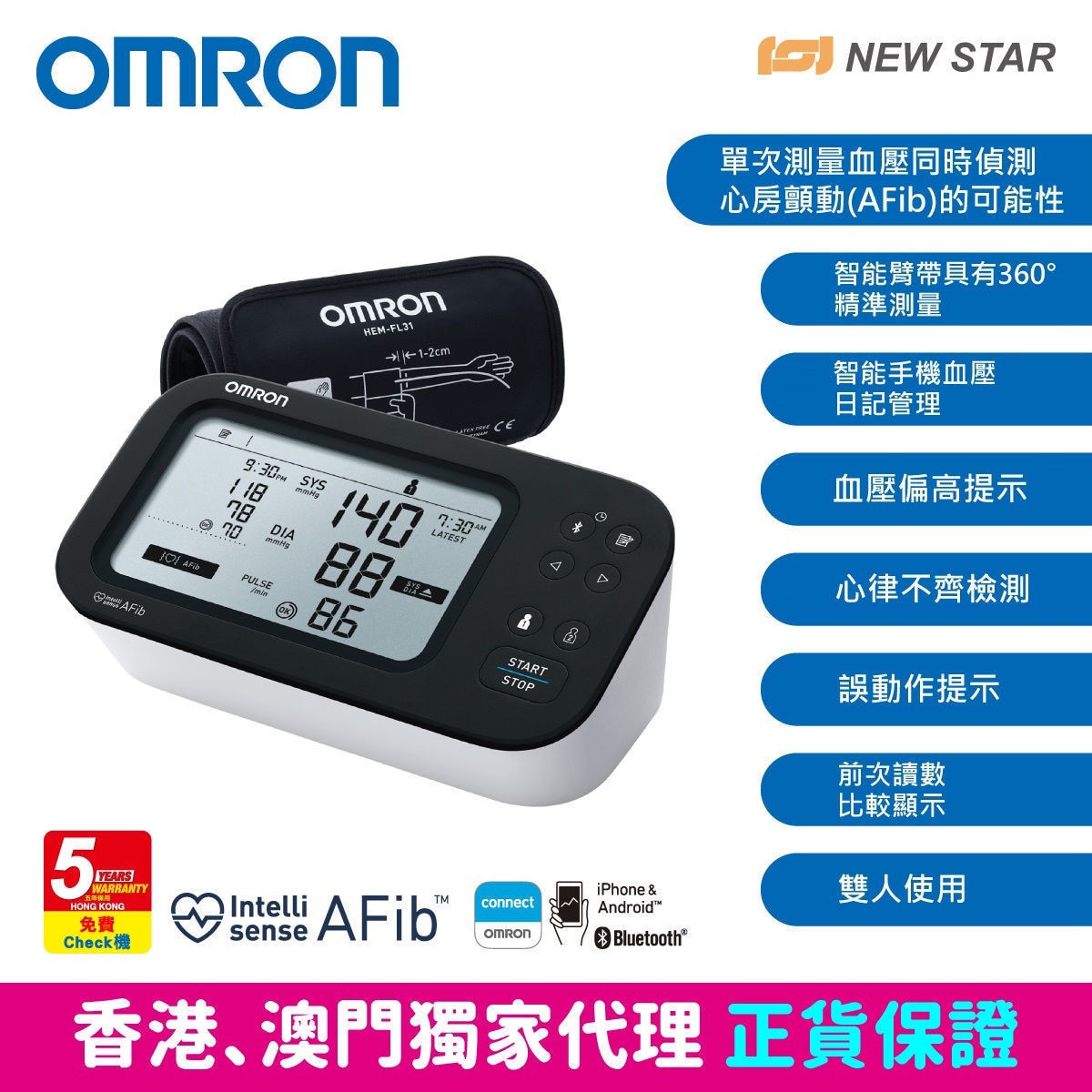 OMRONT HEM-7383T1- Measure blood pressure at home while screening for atrial fibrillation. With just one press, it can simultaneously measure the blood pressure and the possibility of atrial fibrillation (AFib).