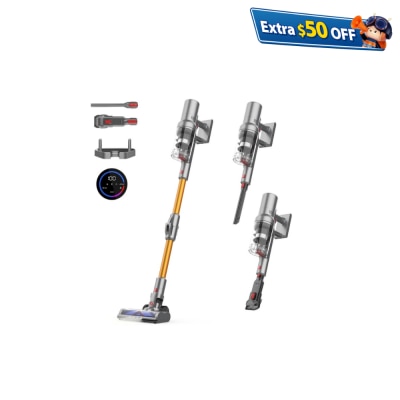 Smart dust sensing in real time, automatically adjust vacuum speed to optimum level for deep cleaning. See speed bar, dust intensity, battery level on LED screen, touch control at finger tips, clean effortlessly