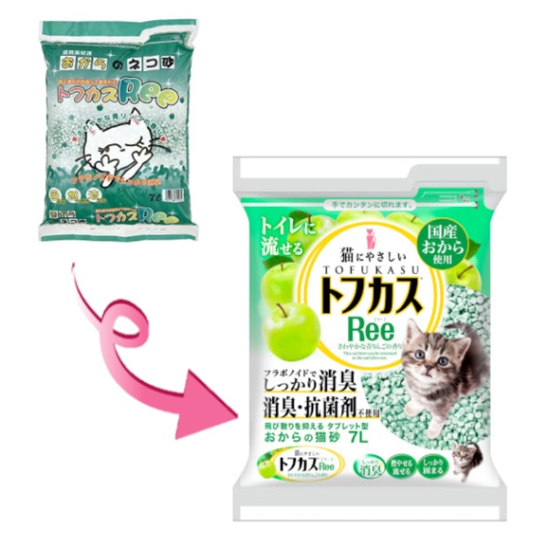 Ree Apple Cat Litter 7L (Apple Scent) Durable, Eco-friendly Clumps upon contact with urine Flushable Fresh apple scent, stronger absorbency Made in Japan Tofu cat litter has become increasingly popular among urban dwellers in recent years due to its strong clumping ability, excellent odor control, relative eco-friendliness, food safety, and water solubility. Compared to other types of cat litter, tofu cat litter is less likely to be tracked out of the litter box by cats and produces less dust, reducing the hassle for many cat owners. Furthermore, because of its water-soluble properties, it quickly dissolves and clumps when exposed to small amounts of liquid (such as cat urine); however, it dissolves completely in large amounts of water and can be flushed down the toilet (actual situation depends on the building's plumbing). This makes it ideal for cat owners who prioritize convenience! "Ree" is Japan's No.1 selling eco-friendly cat litter brand, trusted by many pet owners. We are committed to providing high-quality, eco-friendly, and cat-friendly products. Refreshing cat litter not only focuses on superior odor control and clumping, but also prioritizes the health and well-being of both cats and the environment. Choose Refreshing to provide your cat with the most comfortable and clean living space, while practicing green and environmentally friendly principles.
