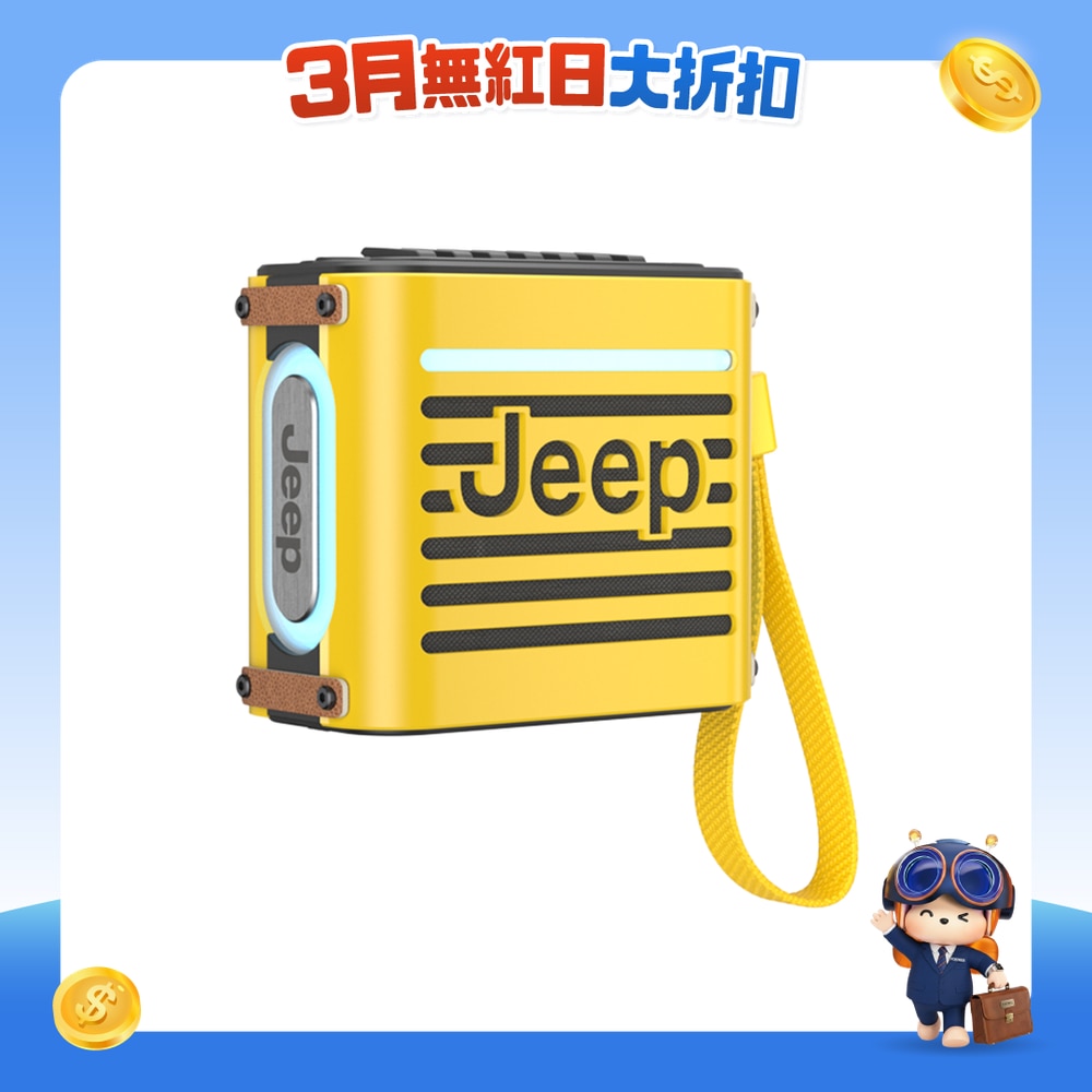 Jeep outdoor portable waterproof Bluetooth speaker, outdoor mode 100Hz-18kHz heavy bass sound quality, IPX5 waterproof, supports Bluetooth/TF card, has 6-8 hours of playback life, and can connect two devices at the same time.
