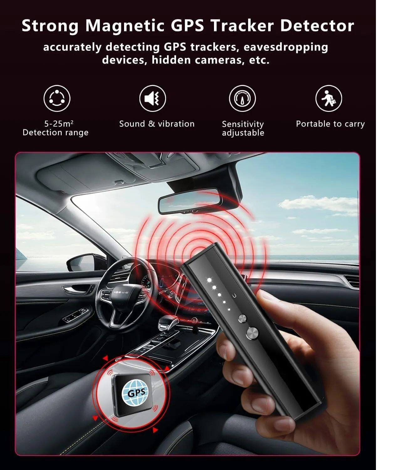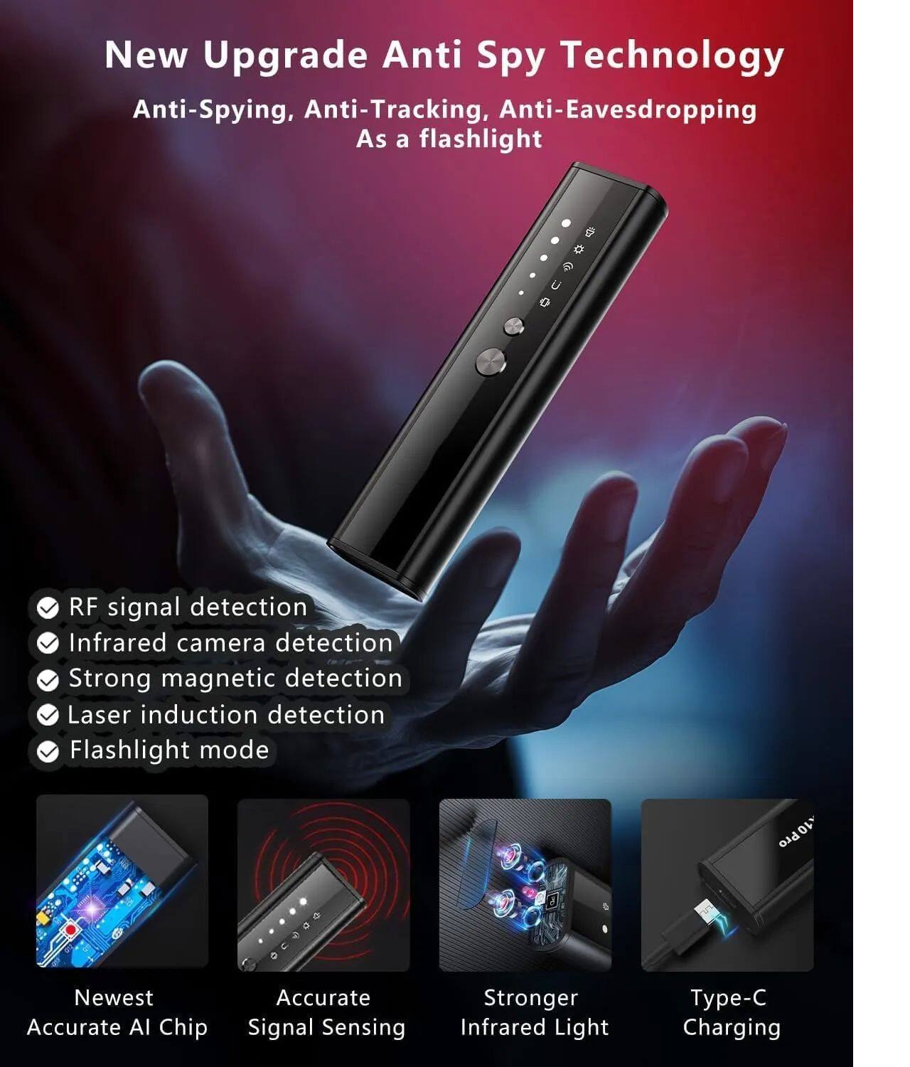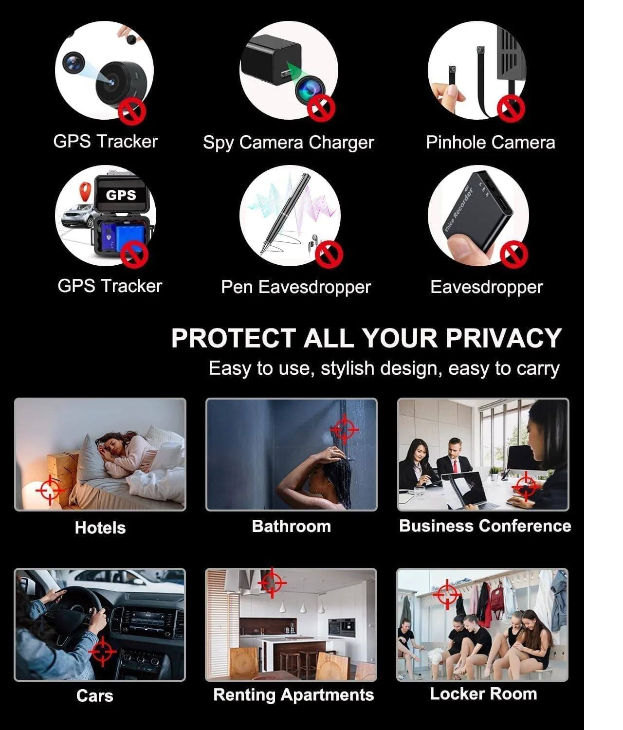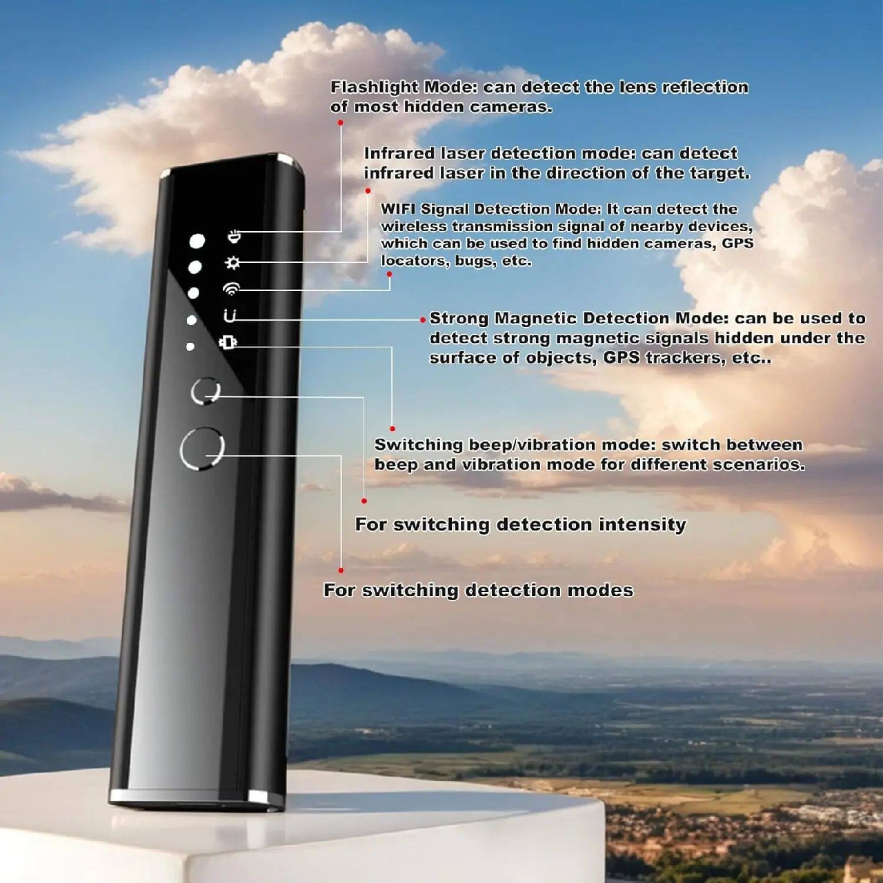 Handheld eavesdropping, spying, and tracking detection device 5-level intensity adjustment flashlight function ultra-long battery life of 168 hours.