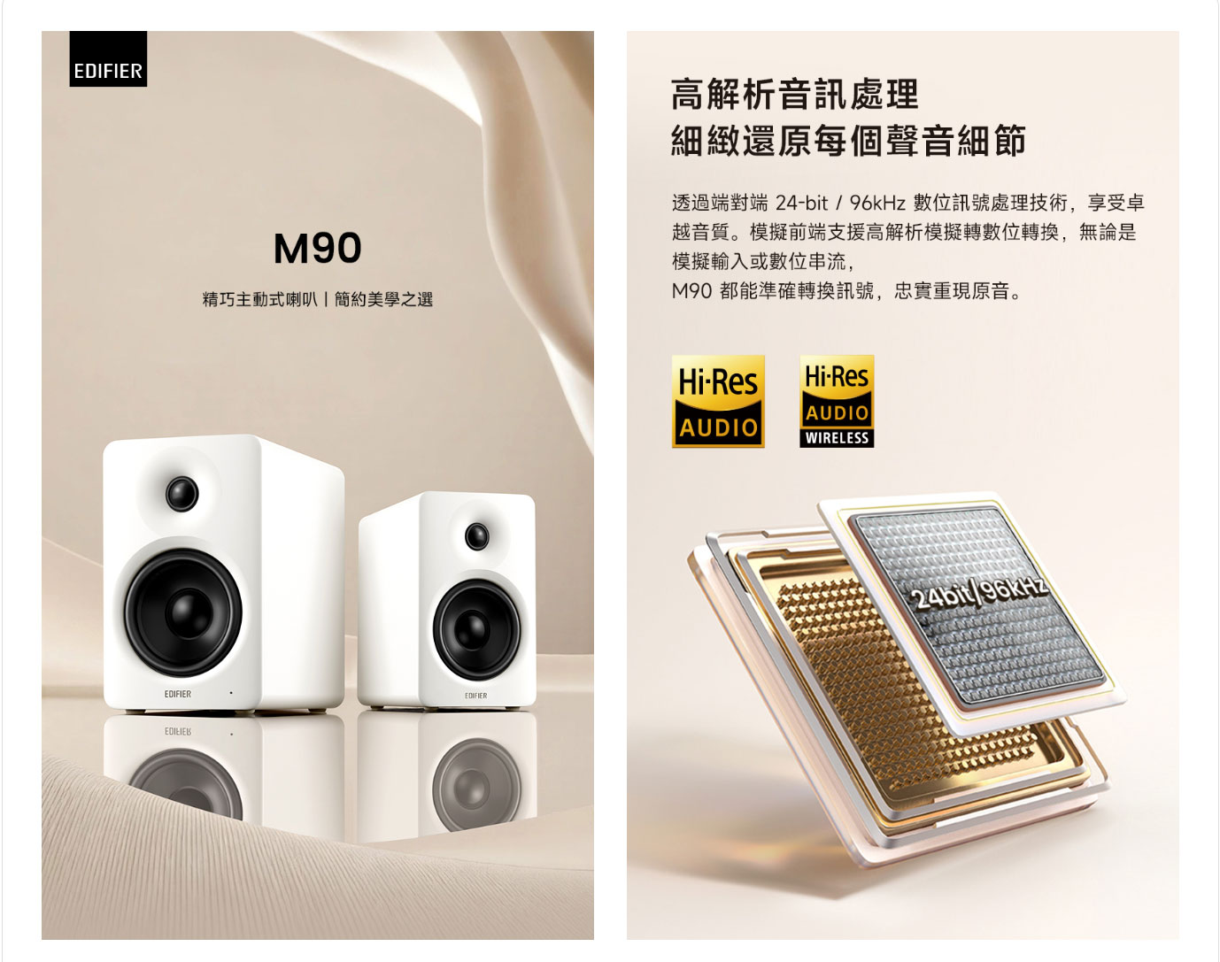 100W RMS total output power , 4-inch mid-bass unit and 1-inch tweeter, DSP supports 24-bit/96kHz, bi-amp active crossover and dynamic range control, Hi-Res Audio & Hi-Res Audio Wireless