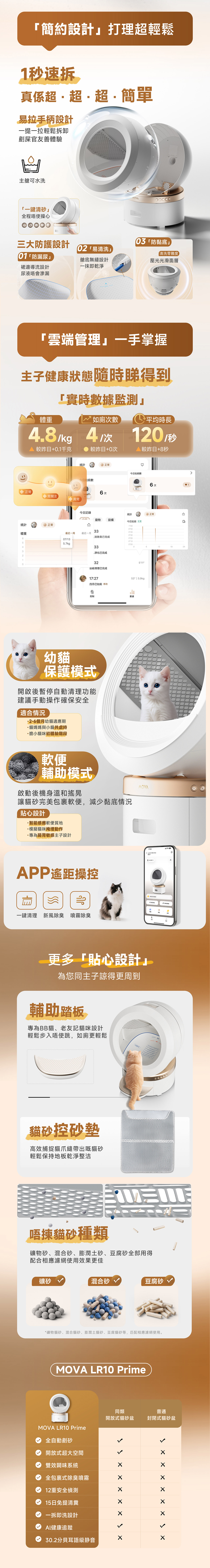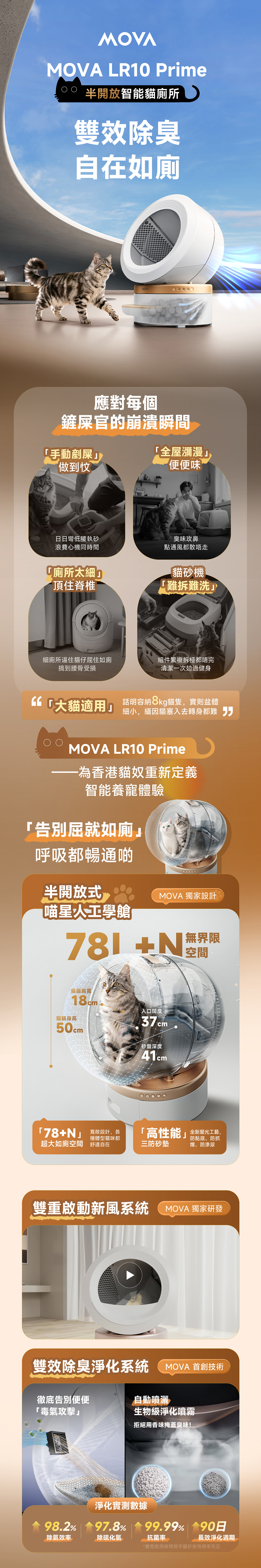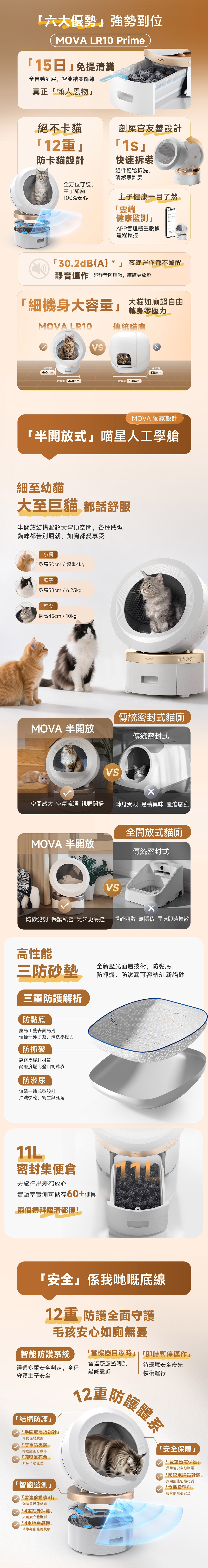 MeowBionic™ Pod, 15-day no-scoop trial, dual-compartment deodorization system, instant cleaning, 12-fold safety protection, thoughtful mutual protection design, and smart pet care assistance.