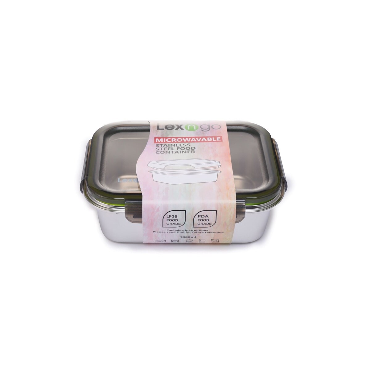 1.316LStainless steel that can be safely used in the microwave oven 2.Leakproof PP Lid and removable silicone seal rings 3.Lighter, safer and durable 4.LFGB food-grade material and BPA-free 5.Capacity: 1300ml 6.Size: 21.5cm x 17cm x 7cm