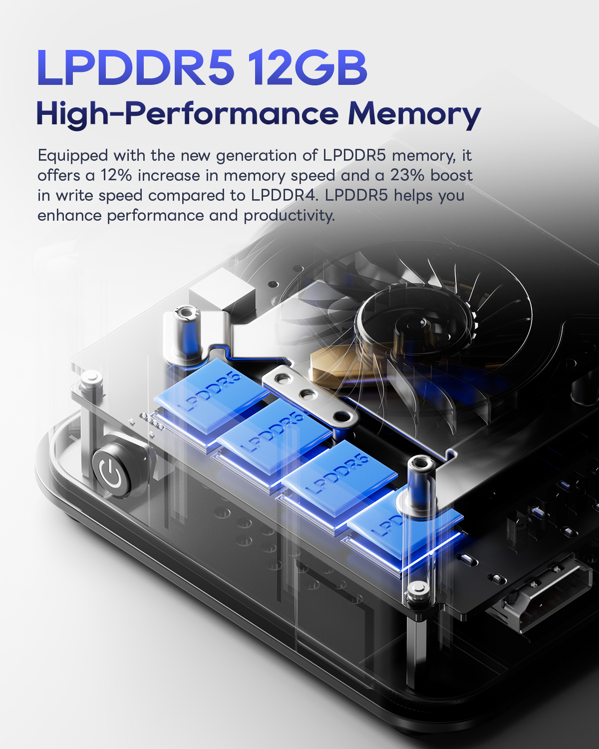 Intel Twin Lake N150 4C/4T/Onboard DDR5 Pre-installed : 12GB/M.2 2242 SATA/NVME Pre-installed : 512GB SSD/DP x1, HDMI x 1, USB Type-C x 1 /GbLan, WiFi-5 & Bluetooth 5.0/USB 3.2 *3/Windows 11 Pro