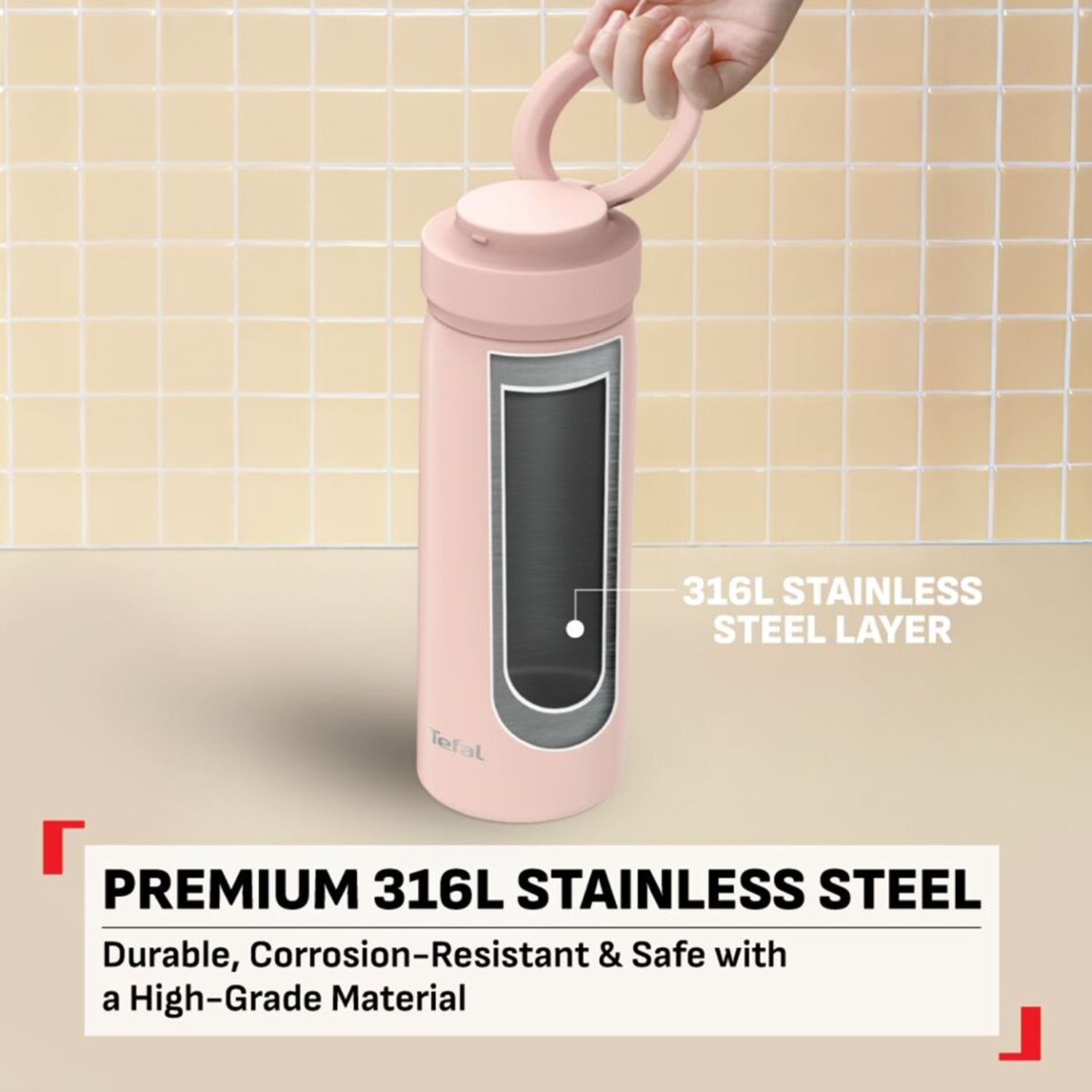 Tefal Mobility Thermal Bottle Pink 450ml Screw Lid-Standard design, enjoy both hot and cold beverages for hours in a high-quality, colorful companion that lets your personality shine through