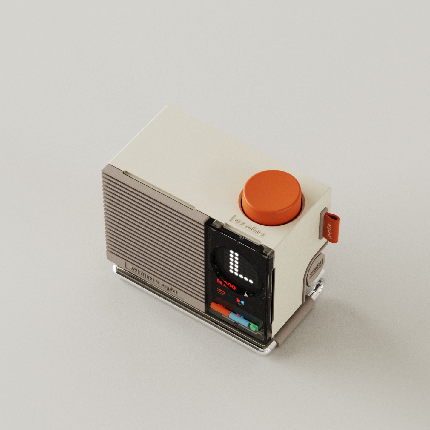 Inspired by LEGO bricks, the product features interchangeable front panels, physical buttons, a dot-matrix display, and indicator lights, enhancing the user experience
