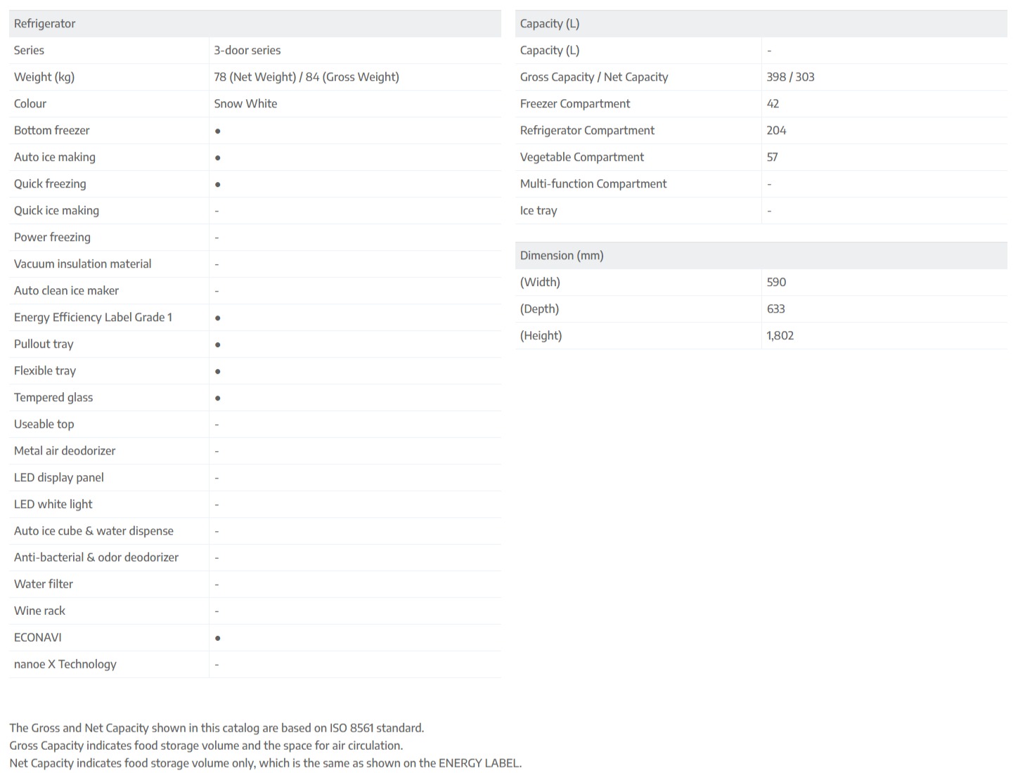 | Net Capacity (L) | Net Capacity (L) 303 | Net Capacity (L) 337L | Net Capacity (L) 298L | Net Capacity (L) 266L |