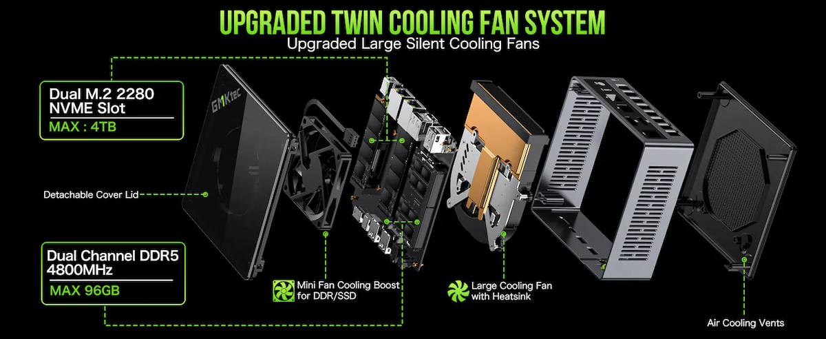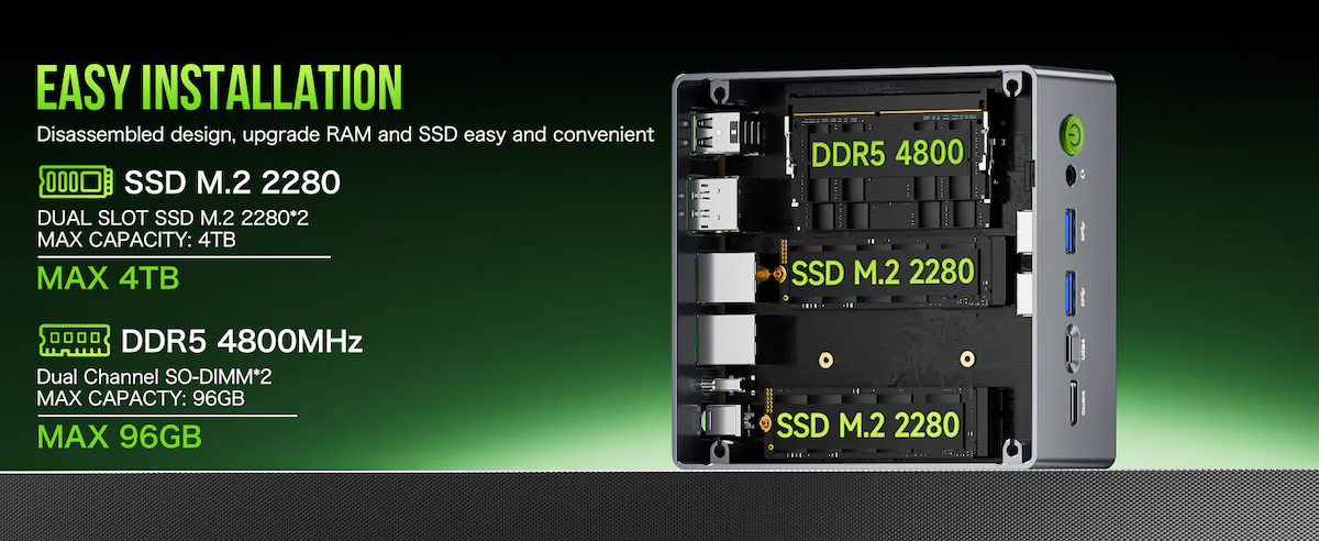 AMD Ryzen™ 7 PRO 6850U/PCIe 3.0 M.2 2280 SSD/2*SO-DIMM DDR5 4800 MHz RAM/OCuLink (PCIe 4.0 x4)/Wi-Fi 6, BT 5.2, 2*2.5 Gb/s RJ45/HDMI 2.1 (8K@60Hz), DP 2.0 (8K@60Hz), 2*USB4 (8K@60Hz)/Windows 11 Pro/132*125*58 mm