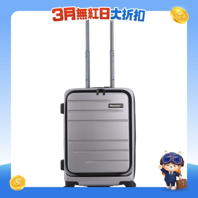 Discovery Patrol 20-inch Hardside Carry-On Suitcase, Front Laptop Compartment, TSA Lock, 4 Spinner Wheels Luggage, Durable Lightweight Trolley Bag - METALLIC Silver