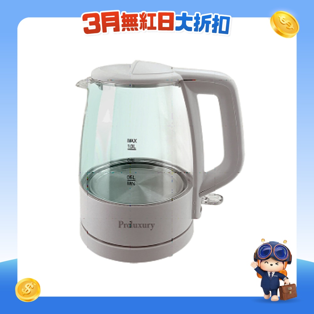 Proluxury PKT907010 Glass Electric Kettle 1L (UK Strix Controller)