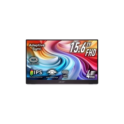 Acer PM161Q B1 is a highly portable 15.6-inch Full HD IPS monitor that can connect to devices via a single USB Type-C cable for both power and video, featuring an integrated adjustable kickstand.