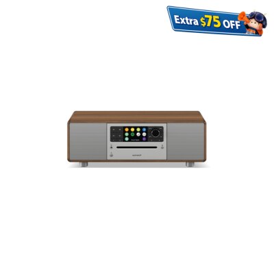 Highest sound quality with slim design: 2-way all-in-one music system with 4″ subwoofer, FM/DAB+ digital radio with CD player, WiFi and Bluetooth®