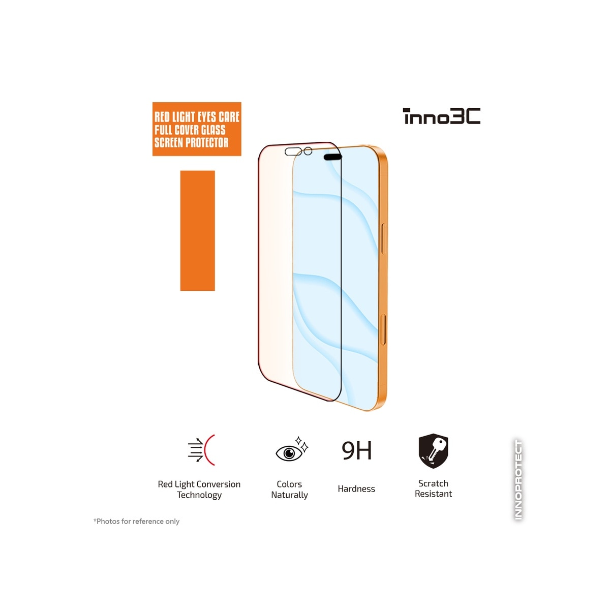 inno3C Red Light Eyes Care Full Cover Glass Screen Protector for iPhone 17 / 17 Pro