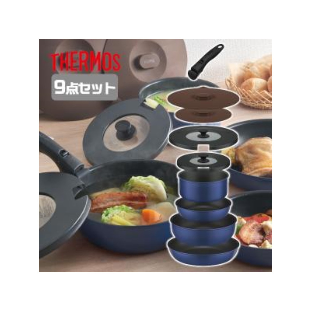 Thermos Removable Handle Cookware 9pcs Sets