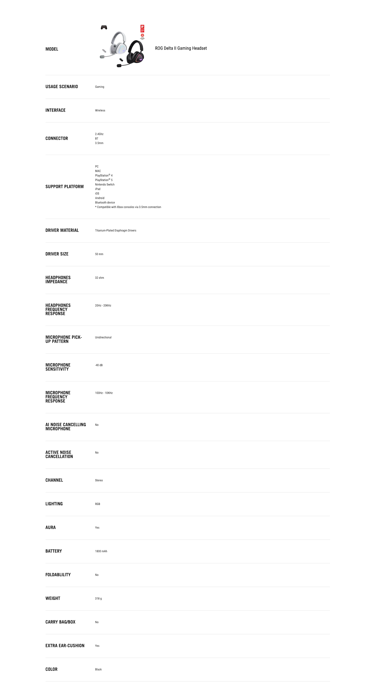 Tri-mode wireless gaming headset with ROG SpeedNova, 50 mm titanium-plated diaphragm drivers, and refined wireless sound signature, 10 mm super-wideband boom microphone, DualFlow Audio, up to 110-hour battery life, lightweight 318-g design