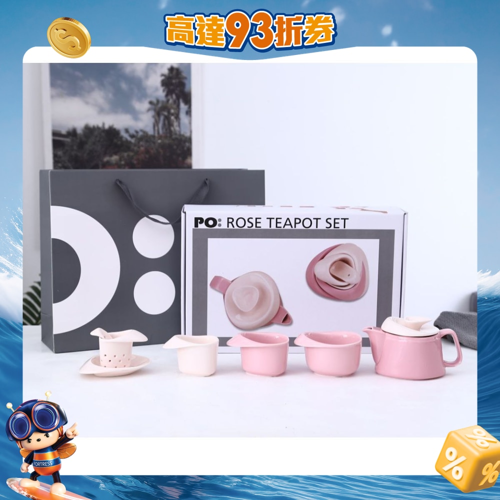 1. Rose alike teapot with 3 mugs, a spoon, saucer and an infuser2. Suitable to use as gift 3. Made of stoneware, microoven & dishwasher safe