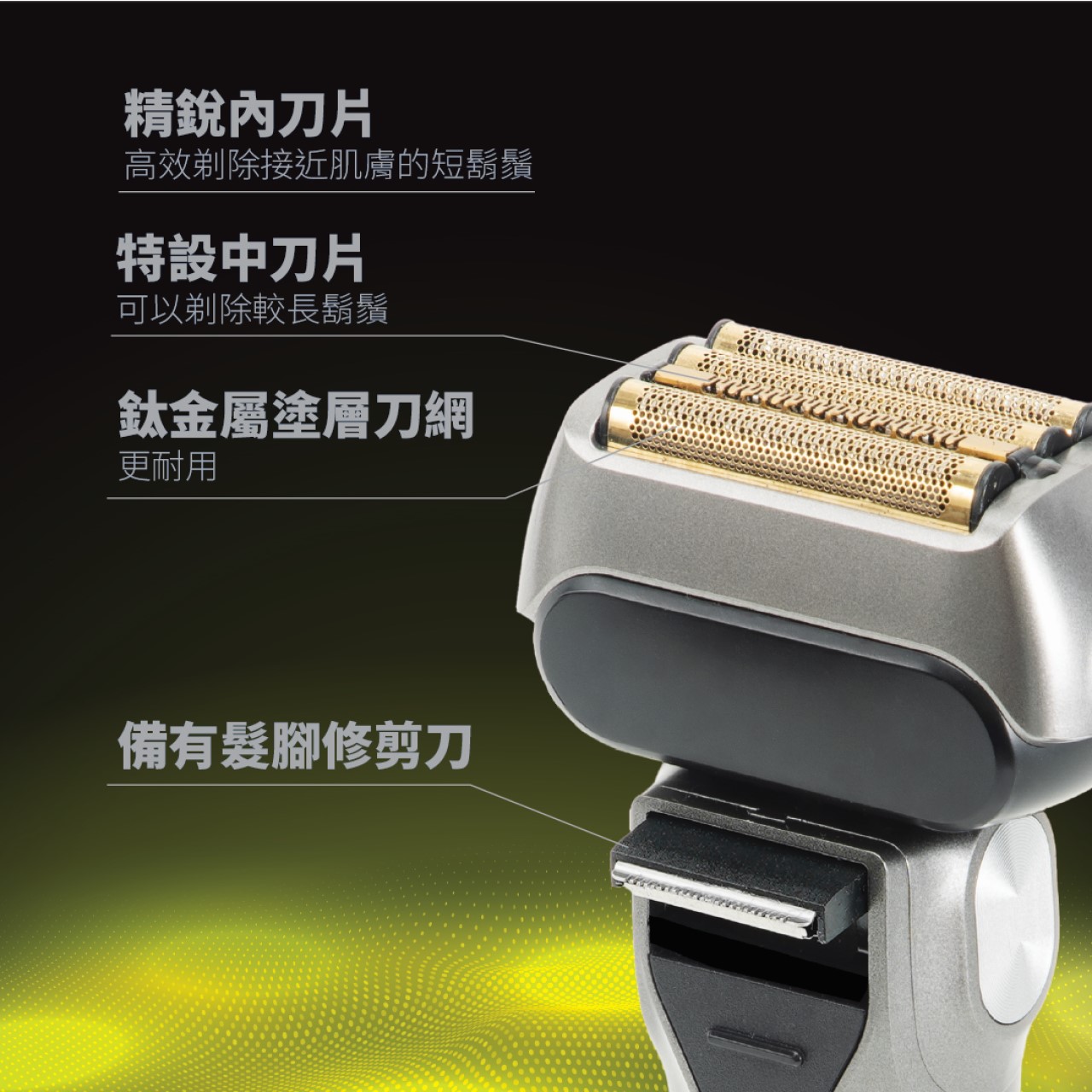 *4-head independent floating technology, close to the facial contours, deep and fast shaving. *Special center blade for longer beards. *Titanium coated foils *Up to 8500 RPM motorized head*IPX7 waterproof rating *2 shaving speeds